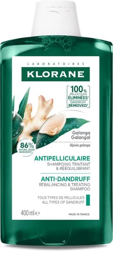KLORANE Pečující šampon proti lupům pro obnovení rovnováhy s galangalem odstraňuje až 100 % lupů, ať už suchých nebo mastných, dokonce i těch nejúpornějších. Jeho složení, které se skládá z 86 % ze složek přírodního původu, je šetrné k vlasovému vláknu, vlasové pokožce a zároveň je účinně čistí a zanechává vlasy jemné, lehké. Pomáhá obnovit rovnováhu a pročistit vlasovou pokožku již od prvního použití a poskytuje 6 týdnů ochrany proti opětovnému návratu lupů. Balení obsahuje 400 ml.