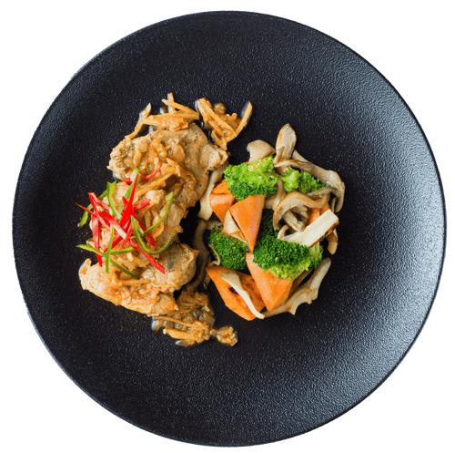 S šéfkuchaři ze Zátiší jsme pro vás připravili dušené kuře na zázvoru, pečené batáty s hlívou ústřičnou a brokolicí.