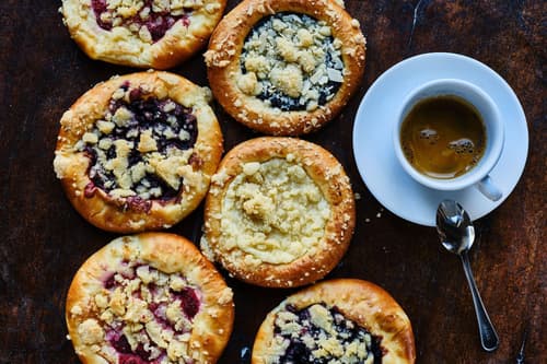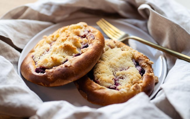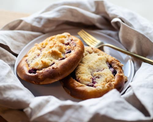 Moravský rybízový koláč od Zrno zrnko. Uvnitř, a tedy i v prstenci těsta, má tvarohovou náplň. Na povrchu je posypaný rybízem a ozdoben domácí máslovou drobenkou. Pro větší vláčnost v Zrno zrnko těsto zadělávají mlékem. Před nakynutím koláč stráví celou noc v chladu, aby se jeho chuť rozvinula. Po upečení koláč potírají směsí másla a třtinového rumu, aby krásně voněl.