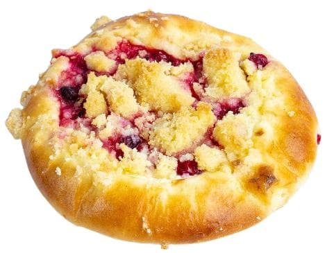 Mražený červený rybíz 30 %, pšeničná mouka, tvarohová náplň 15 % (tvaroh, cukr, vejce, vanilkový cukr (cukr, vanilka), citronové aroma), mléko, máslo, cukr, žloutky, pekařské droždí, vanilkový cukr (cukr, vanilka), jedlá sůl, třtinový rum (třtinový destilát, voda, cukr, barvivo: karamel), citronové aroma
