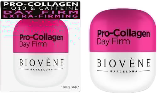 Dopřejte své pleti denní dávku pružnosti a vitality s Biovène Pro-Collagen Extra Firming Day Cream, který kombinuje kolagen, koenzym Q10, kofein a organický šípkový olej pro viditelně pevnější a mladistvější vzhled.