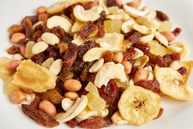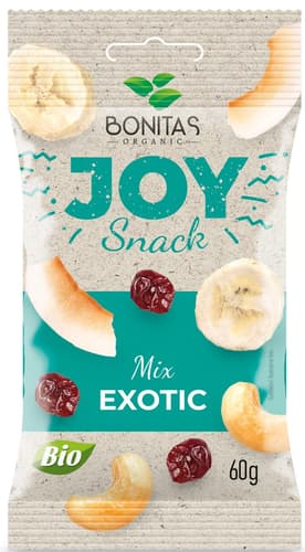 Směs sušeného ovoce a ořechů v BIO kvalitě. Spojení banánových chipsů, kokosu, brusinek a kešu vytváří osvěžující exotickou kombinaci chutí. Ideální zdravá svačina na cesty, do práce nebo po cvičení.
