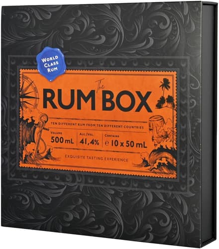 The Rum Box Blue Edition je kazeta s různými rumy z různých zemí celého světa. Sada obsahuje 10 miniatur.