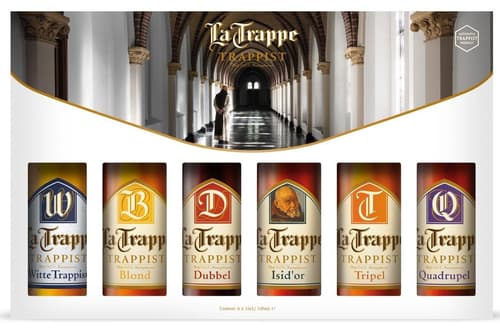 La Trappe Dárkové balení šesti piv. Objevte pravou chuť trapistického pivovarnictví s exkluzivním dárkovým balením La Trappe. Šest ikonických piv z nejstaršího nizozemského trapistického pivovaru, která reprezentují tradici, kvalitu a rozmanitost chuťových odstínů. Ideální dárek pro znalce i ty, kdo chtějí poznat legendu mezi trapistickými pivy.