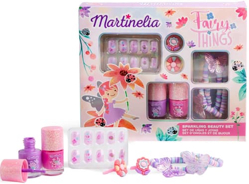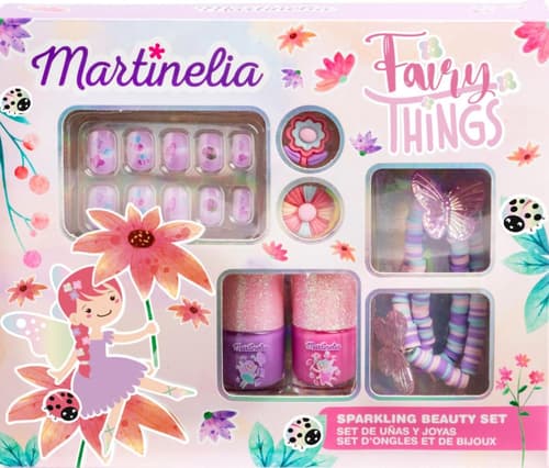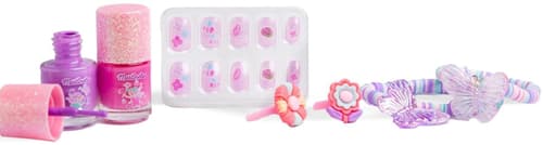 Kouzelná třpytivá sada Fairy Things promění malé parádnice v opravdové víly. Obsahuje 20 nalepovacích nehtů, 2 laky, 2 prstýnky a 2 náramky, díky nimž si děti mohou vytvářet vlastní pohádkové kombinace. Hravý design, pestré barvy a lesklé detaily podporují kreativitu, fantazii i smysl pro styl. Ideální pro první dětské beauty rituály plné třpytu a radosti.