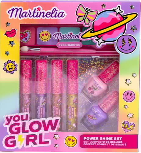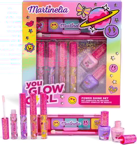 Nechte děti stát se hvězdou každého dne s kosmetickou sadou Martinelia Super Girl Power Shine. Tento zářivý set obsahuje čtyři lesky na rty, pět očních stínů a dva laky na nehty, takže malé parádnice mají vše, co potřebují pro svůj hrdinský look. Hravé barvy, třpyt a stylový design podporují kreativitu, fantazii a sebevyjádření – protože i superhrdinky se chtějí cítit krásně.