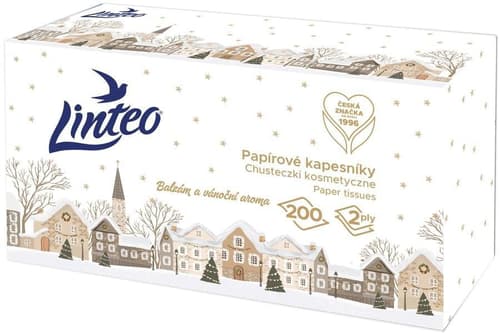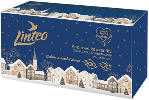 Zimní bílé dvouvrstvé papírové kapesníky Linteo vám zaručí vysokou jemnost, měkkost a pevnost.