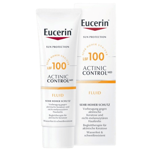 Eucerin SUN Actinic Control MD fluid SPF100 je certifikovaný zdravotnický prostředek s velmi vysokou ochranou proti slunci, blokující až 99 % UVB záření. Účinně předchází aktinické keratóze a nemelanomovým kožním nádorům, zároveň podporuje jejich léčbu. Má lehkou, rychle vstřebatelnou texturu a je zcela bez mikroplastů. Ideální pro každodenní použití. Balení 80 ml.