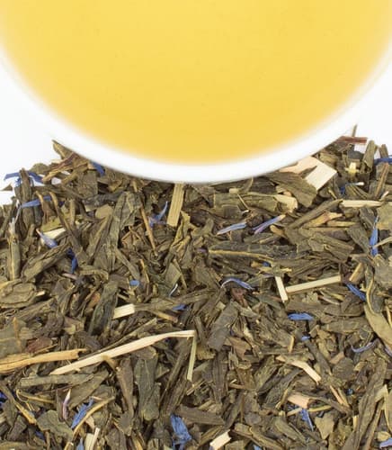 Zelený čaj, citronová tráva, kousky borůvek, borůvkové aroma, chrpa, vanilkové aroma. Obsahuje přírodní příchutě.