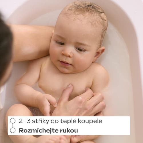 Přidejte 2–3 střiky do teplé vody a promíchejte. Nepálí v očích a je vhodná již od narození.