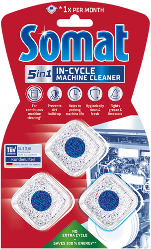 Tablety fungují během běžného mycího cyklu, což znamená, že není potřeba žádný další čisticí program k udržení vaší myčky v tom nejlepším stavu. Jsou určeny pro pravidelné měsíční použití a účinně bojují proti odolnému vodnímu kameni a mastnotě, přičemž zanechávají vaši myčku hygienicky čistou a svěží.