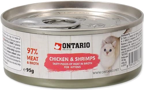 Ontario Konzerva pro koťata kuřecí kousky s krevetami