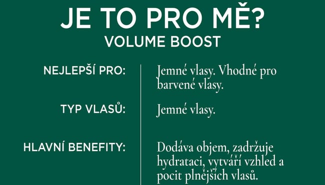 Dejte zplihlým vlasům energii, lehkost a přirozený objem s každým umytím. Šampon Biolage Volume Boost šetrně čistí jemné vlasy, aniž by je zatížil, a zároveň jim dodává dlouhotrvající nadzdvižení od kořínků. Vlasy zůstávají vzdušné, pružné a lesklé, přesně tak, jak si přejete.