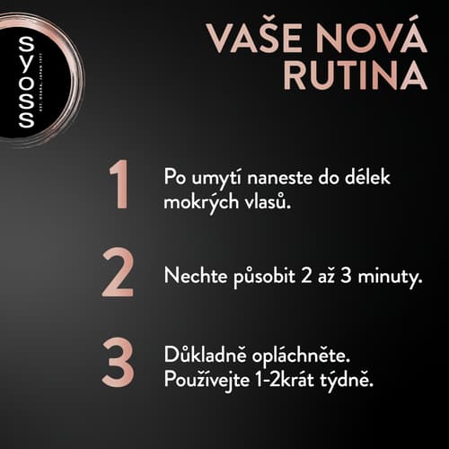 Naneste do délek mokrých vlasů po umytí, nechte působit 2–3 minuty a poté důkladně opláchněte. Používejte 1–2× týdně. Pro maximální efekt kombinujte s produkty Syoss Intense Keratin.