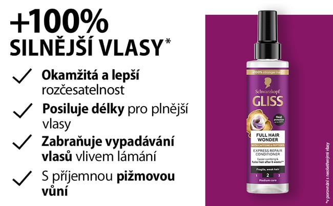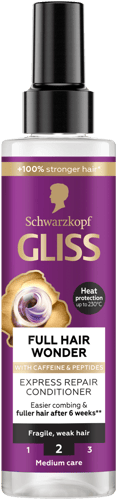 Před použitím protřepejte. Nastříkejte do ručníkem vysušených nebo suchých vlasů a neoplachujte. Vyhněte se kontaktu s očima. Pro nejlepší výsledky používejte po šamponu Gliss Full Hair Wonder.