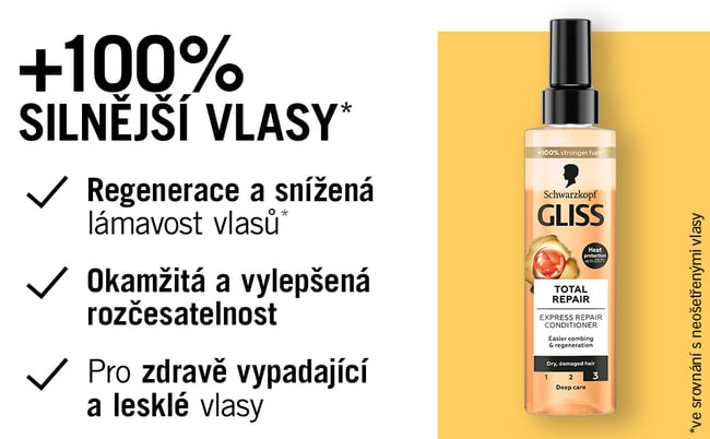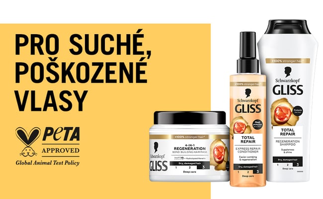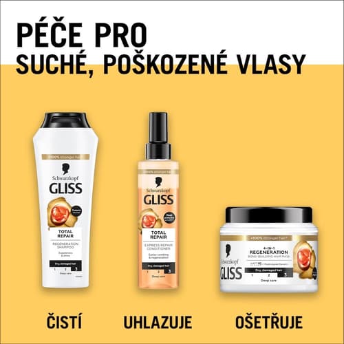 Úroveň péče Gliss 3 – hloubková péče je ideální pro každodenní regeneraci suchých a poškozených vlasů.