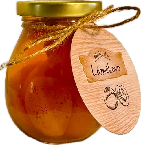 Meruňkový kompot Lázničkovo. Ovoce zpracované ve sladkém nálevu.