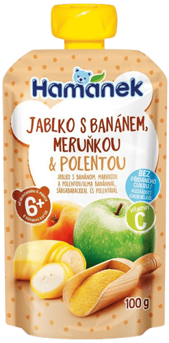 Hamánek Ovocná kapsička jablko, banán, meruňka a polenta