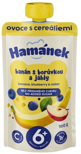 Ovocná kapsička jablko, banán, borůvky a jáhly pro děti od ukončeného 6. měsíce. Kapsička zajistí dětem přísun potřebného ovoce a vitamínů. Je bez přidaného cukru a díky praktickému balení ji lze brát kamkoliv na cesty.