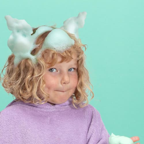 Barevná sprchová pěna je vyrobena z přírodních ingrediencí respektujících citlivost dětské pokožky. Obsahuje přírodní barvivo chlorofyl, který dodává pěně zelenou barvu. Pěnu vytváří výtažky z kokosu. Součástí složení je také rostlinný glycerin a sůl kyseliny mléčné. Pomáhají udržovat přirozenou hydrataci pokožky a zabraňují jejímu vysušování během koupání.
