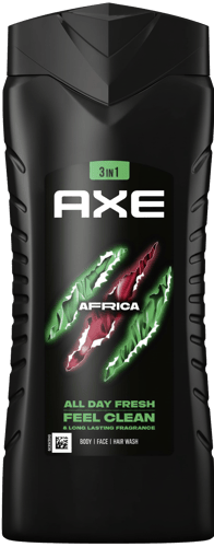 Exotická vůně sprchového gelu Axe Africa spojuje tóny citrusových plodů a jantaru. Příjemná nasládlá vůně vydrží až 12 hodin.