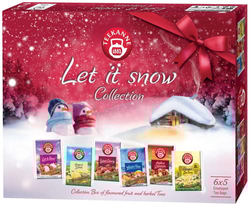 Let it snow čajová kolekce ochucených ovocných čajů Teekanne pro chladné zimní večery.