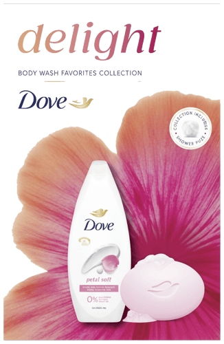 Dárková kazeta Dove Petal Soft nabízí dokonalou kombinaci jemné péče a svěží vůně. Obsahuje pečující kosmetiku Dove a sprchovou houbu pro ještě příjemnější zážitek z každodenní sprchy. Zanechává pokožku hebkou, hydratovanou a krásně provoněnou.