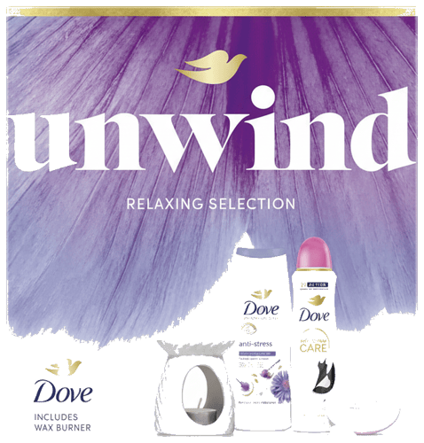 Dárková kazeta Dove Antistress přináší harmonii těla i mysli. Obsahuje pečující produkty s uklidňující vůní a elegantní aroma lampu, která promění váš domov v oázu klidu.