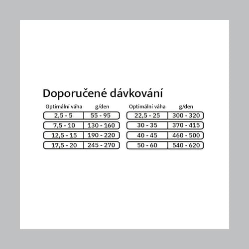 - hypoalergenní receptura s minimalizovaným počtem ingrediencí