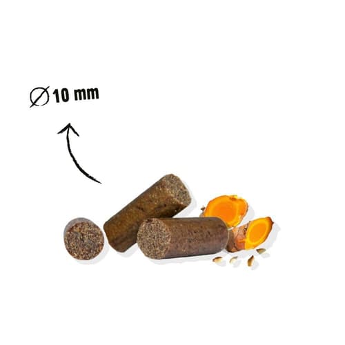 Receptura cílí na podporu kloubů a chrupavek díky kombinaci vegan glukosaminu, slávky zelenoústé, konopných semínek a kurkumy; prebiotický chitin z hmyzu zároveň napomáhá rovnováze střevní mikroflóry. Sladké brambory a bramborový škrob dodají energii bez zbytečné zátěže, takže pamlsky jsou ideální při tréninku i jako každodenní malá radost – s čistým složením a skvělou chutí.