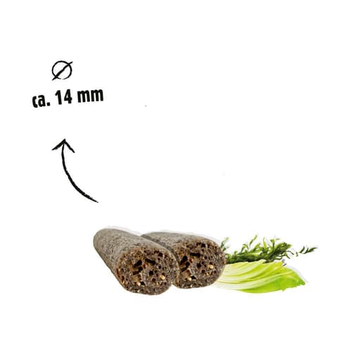 Tento výrobek je vysoce kvalitní prémiový pamlsek, který je vyroben bez barviv. Mírné, přirozené odchylky v barvě a velikosti jsou způsobeny přírodními surovinami a nemají žádný vliv na kvalitu. V důsledku výrobního procesu mohou být přítomny stopy jiných bílkovin a sacharidů.