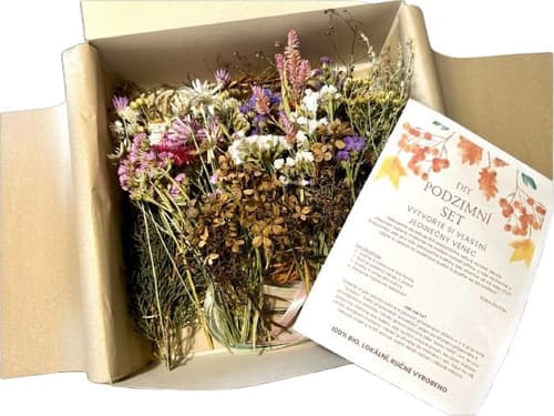 Přivítejte útulnou předvánoční atmosféru s balíčkem plným sušených květin a materiálu pro vaše kreativní tvoření. Ať už jste zkušený tvůrce, nebo začátečník, s touto sadou si snadno a s radostí vyrobíte krásný podzimní věnec (nebo jinou dekoraci) přímo v pohodlí vašeho domova.
