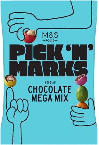 Marks & Spencer Pick 'n' Marks je směs dobrot obalených v barevné cukrové krustě. Mix obsahuje mléčnou čokoládu, arašídy a pufovanou rýži, vše obalené v jemné belgické čokoládě. Tato směs je ideální pro milovníky sladkostí, kteří hledají kombinaci křupavé textury a čokoládové chuti.