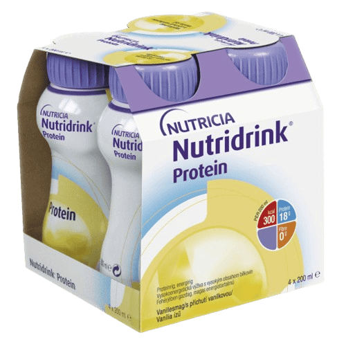 Nutridrink Protein je vysokoenergetická tekutá výživa s vysokým obsahem bílkovin. Dietní potravina pro zvláštní lékařské účely. Určeno k dietnímu postupu při podvýživě související s nemocí. Výrobek je bez lepku, balený v ochranné atmosféře. Je určený pro dospělé, s vanilkovou příchutí. Balení obsahuje 4×200 ml.