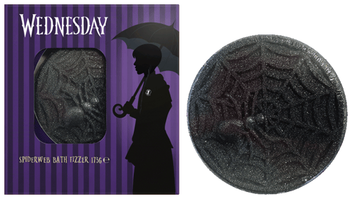 Bomba do koupele ve strašidelném designu populární série Wednesday.