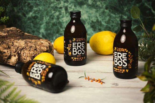 Erebos Racket je nealkoholický nesycený nápoj vyráběný louhováním bylin a koření s vysokým obsahem přírodního kofeinu (max. 40 mg/100 ml) a vysokým obsahem vitamínu C. Neobsahuje konzervanty, barviva ani umělá aromata.