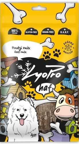 Lyopro 100% přírodní hovězí mix potěší vašeho chlupáče intenzivní chutí a vůní poctivého masa. Dopřejte mu vydatnou a zdravou odměnu, která potěší nejen chuťové buňky, ale i jeho tělo.