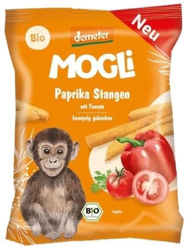 Mogli BIO křupavé paprikové tyčinky vyrobené z jemné pšenice dochucené bylinkami. Oblíbená svačina na cesty, každou přestávku a pro všechny velké i malé fanoušky křupavých dobrůtek. Navíc neobsahují palmový olej. Chutnají skvěle i s dipem.