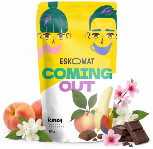 Kmen & Eskomat Coming out Filtr je zrnková výběrová káva z Kolumbie s promytým zpracováním. Nabízí chuťový profil broskví, květin a mléčné čokolády, což ji činí sladkou, jemnou a zároveň výraznou. Coming out je káva, která má odvahu být sama sebou. Odvahu vybočit z řady svou chutí. První káva z dílny projektu Eskomat. Káva symbolizuje nový začátek, otevřenost a odvahu jít ven s tím, kým jsme, a měnit svět kolem sebe bez filtru.