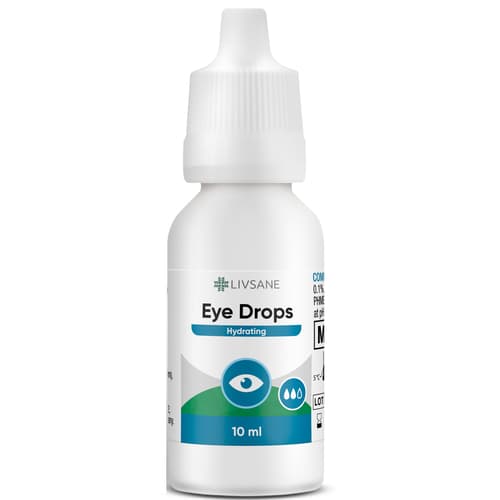 Zdravotnický prostředek. Dopřejte svým očím úlevu a svěžest s hydratačními očními kapkami LIVSANE. Sterilní, zvlhčující, biokompatibilní oční roztok s 0,1 % kyseliny hyaluronové je ideální pro lubrikaci a hydrataci unavených a suchých očí. Kapky poskytují efektivní pomoc v případě: netraumatických/nepatologických změn slzného filmu, nepříznivých vnějších vlivů (nadměrné vystavení slunečnímu záření, větru, prachu, klimatizaci, suchému a znečištěnému ovzduší), zvýšeného očního stresu (práce s počítačem, nepříznivé světelné podmínky, noční řízení), dlouhodobého používání kontaktních čoček. Vlastnosti produktu: Lze používat s kontaktními čočkami. Chrání, hydratují a lubrikují povrch oka. Balení obsahuje 10 ml.