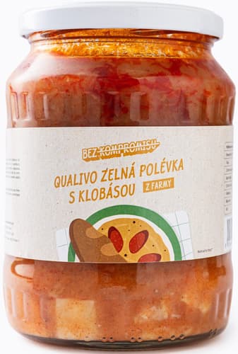 Zelná polévka s klobásou od značky Qualivo v prémiové kvalitě. Polévka je vyrobena z vývaru, klobásy, čerstvé zeleniny a koření.