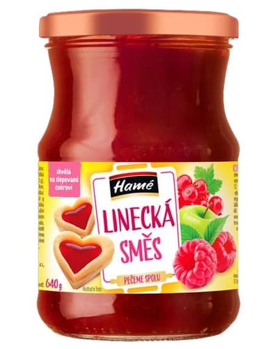Hamé Linecká směs je sterilované zpracované ovoce, jako jsou jablka, maliny a červený rybíz. Pro výrobu 100 g hotového výrobku bylo použito 70 g ovoce.
