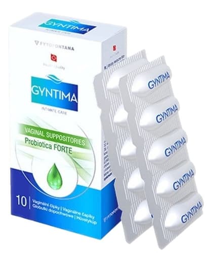 Zdravotnický prostředek. Fytofontana GYNTIMA Probiotica Forte vaginální čípky jsou určené k péči o zdravé poševní prostředí. Jsou vhodné při bakteriálních a kvasinkových infekcích, výtocích, narušené mikroflóře nebo po léčbě antibiotiky. Přípravek účinně zmírňuje svědění, pálení, podráždění a nadměrné výtoky, zároveň obnovuje přirozenou vlhkost a biologickou rovnováhu v pochvě. Kombinuje antiseptické účinky s podporou růstu prospěšných laktobacilů. Vlastnosti: Obsahuje Tea tree oil (čajovníkový olej). Ve formě vaginálních čípků, které se snadno zavádějí. Balení obsahuje 10 vaginálních čípků.