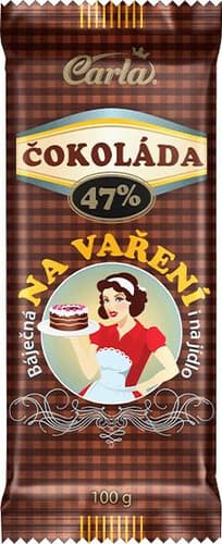 Čokoláda na vaření Carla se snadno rozpouští a dodává pokrmům bohatou čokoládovou chuť. Obsah kakaové sušiny v hořké čokoládě je nejméně 47 %.