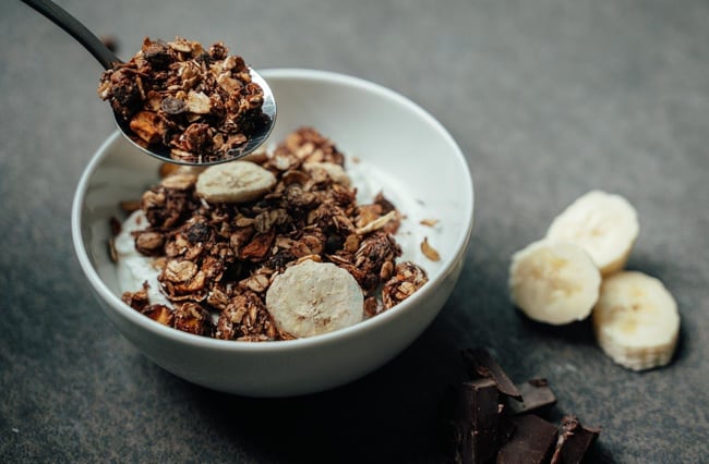 Smíchejte 50 g granoly s oblíbeným jogurtem nebo mlékem.