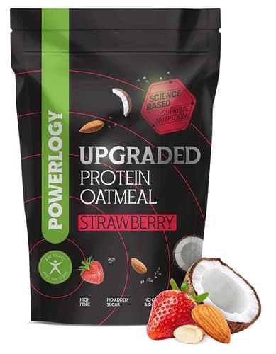 Bezlepková snídaňová kaše značky Powerlogy s příchutí jahody. Je obohacena o veganský protein, MCT tuky, prebiotickou vlákninu a chia semínka. Obsahuje speciální škrob Palatinose pro postupné uvolňování energie. Vhodná také pro vegany.