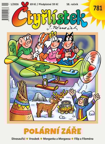 Čtyřlístek č. 1/2026 je měsíčník s 36 stranami plný barevných obrázků a příběhů. Každé vydání obsahuje dobrodružství čtyř oblíbených hrdinů a dalších postav, jako jsou Cyril, Mikuláš, Čaroděj Metloděj a Sedmikráskov.