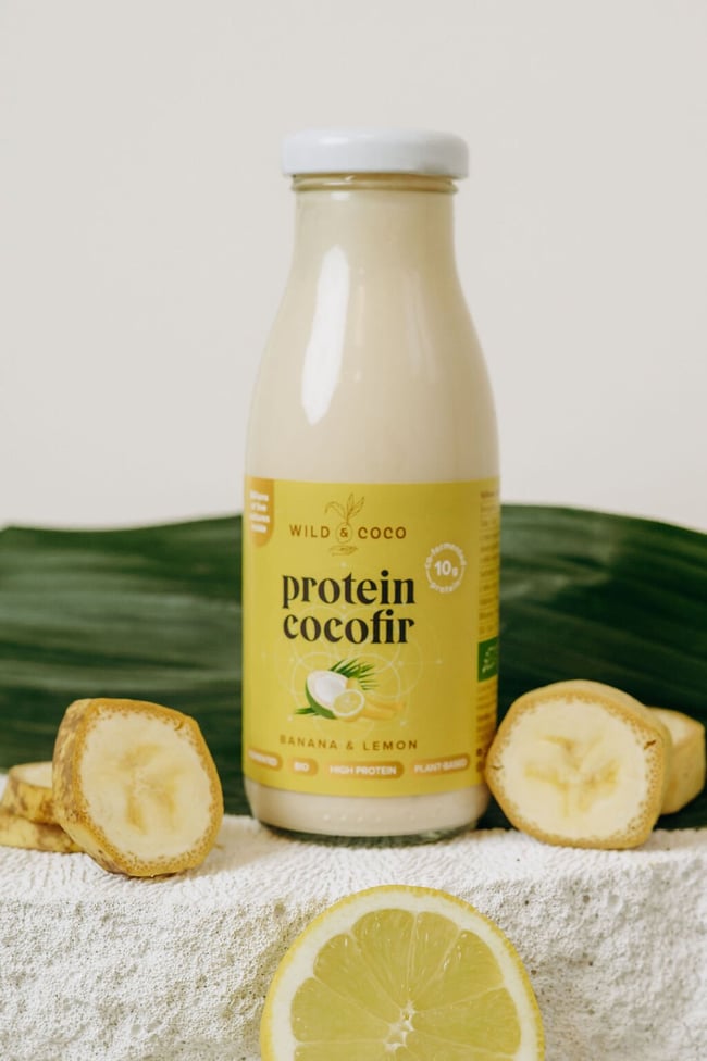 Osvěžující proteinový nápoj z mladého kokosu s příchutí banánu a citronu v BIO kvalitě. Obsahuje 10 g rostlinného proteinu v každé lahvičce, miliardy přátelských bakterií (zejména bifidobakterií a laktobacilů), a je bez histaminu. Cocofir je fermentovaný, dále zrající nápoj s jemnými tóny banánu a citronu, bohatý na prebiotika, probiotika a postbiotika, která podporují trávení. Vhodné pro vegany.
