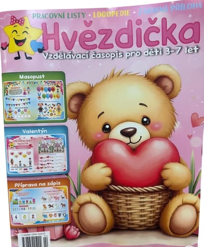 Hvězdička č. 2/2026 je vzdělávací časopis pro děti, který spojuje učení a zábavu. Obsahuje rubriky jako grafomotorika, hravá logopedie, angličtina pro nejmenší, logické hry, jóga a pohádky. Každé číslo je tematicky zaměřené na roční období a významné svátky.