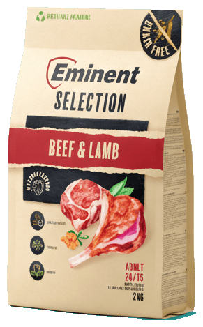Eminent Selection Adult Beef & Lamb je kompletní bezobilné krmivo pro dospělé psy malých a středních plemen. Obsahuje speciální bylinný komplex a minimálně 75 % proteinů živočišného původu.